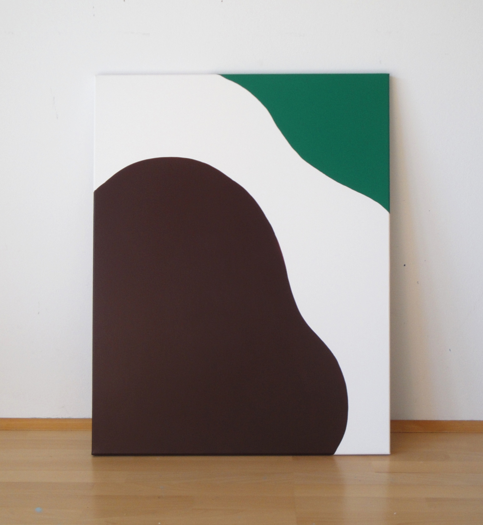 Monika Gojer, touching thoughts brown light green, 2016, acrylic on canvas, 90 x 70 cm